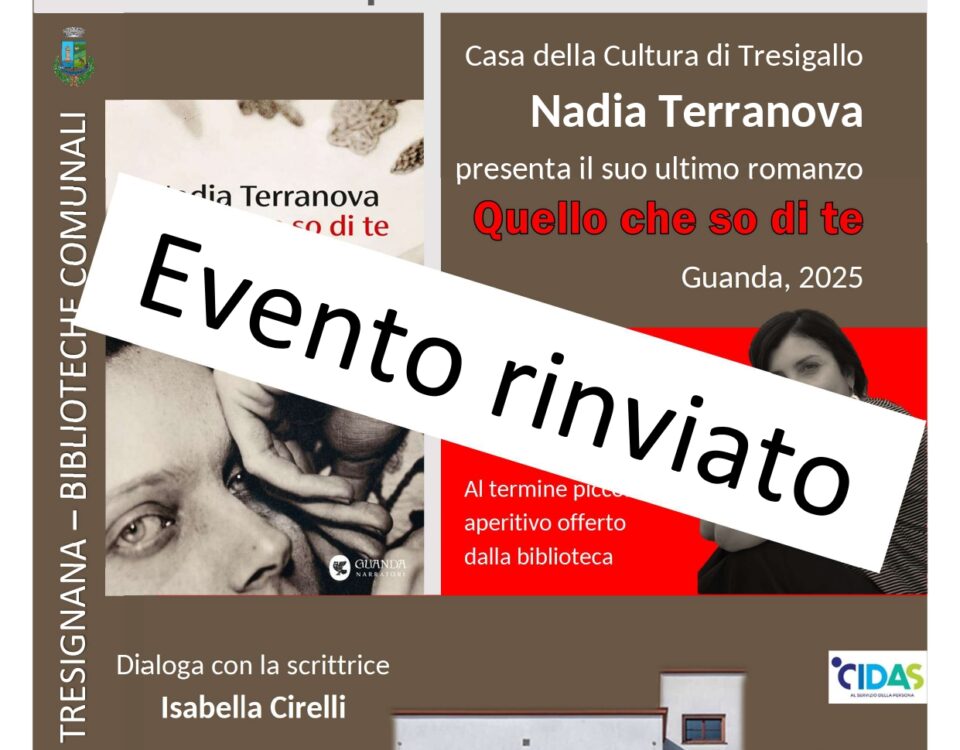 INCONTRO NADIA TERRANOVA. EVENTO RINVIATO A DATA DA DEFINIRE